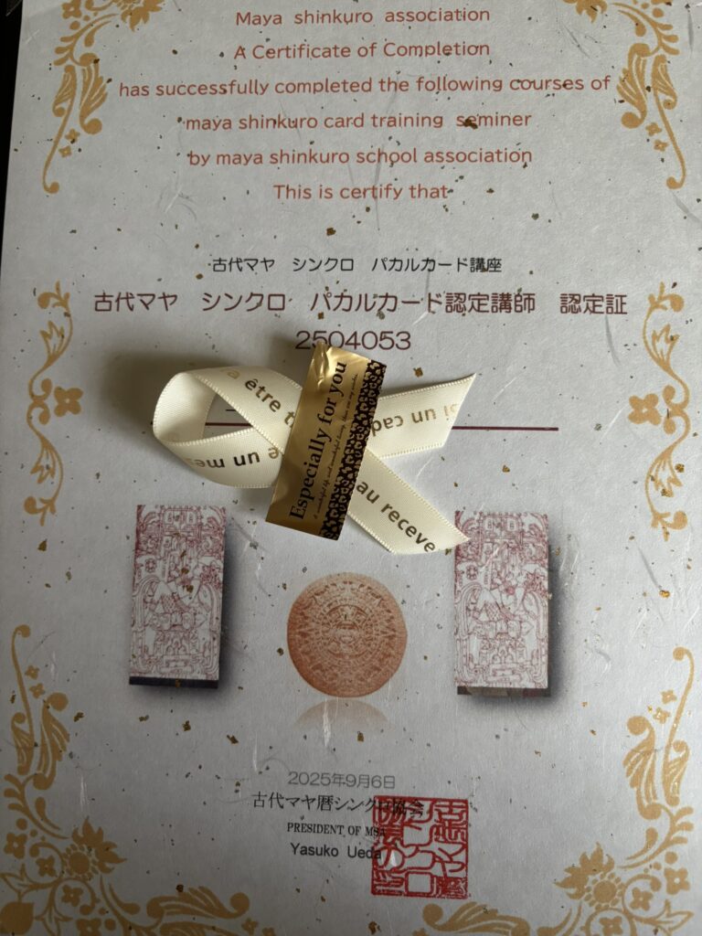 マヤシンクロカード認定証